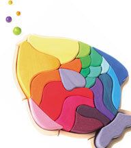 Träpussel i fina färger som kan byggas ihop till valfri form – eller till en fisk! Pris: 597 kr Mer info om var du kan köpa produkten.