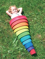 Använd som bro, tunnel, staket, hus, vagga, hinder … 12 delar i olika färger, den största är 18 cm hög och 38 cm lång. Tillverkad av Grimms och prisbelönt för sina pedagogiska egenskaper. Gjord av återplanterade träd, samt målad med giftfria och miljövänliga färger. Pris: 579 kr Mer info om var du kan köpa produkten.