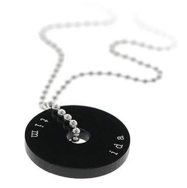 Basic Elements är ett modernt namnsmycke i plexiglas med färgad gravyr och silverkulkedja. Plexiglasberlocken finns i flera färger och halsbandet passar både till män och kvinnor.