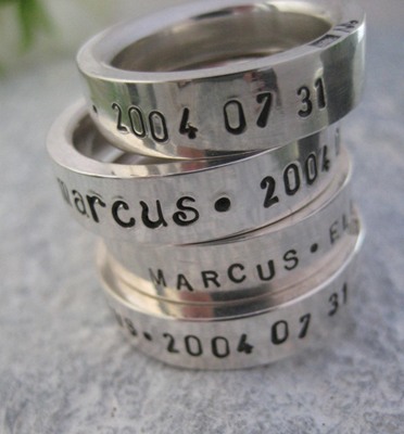 Frieri på mors dag kanske? En snygg och annorlunda ring för bröllop eller förlovning. Ringarna är i silver och du kan förgylla dem med valfri text.