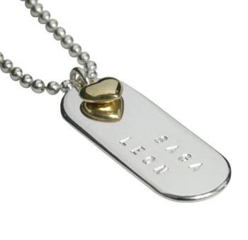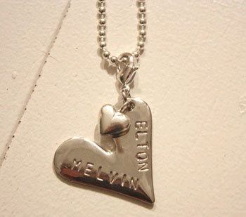 På det här hjärtat i nickelfri silverpläterad metall kan du välja ett eller två namn. Kedjan är ca 45 cm lång och hjärtat som texten stansas på är 3 cm. Alla smycken är handgjorda och i nickelfri silverpläterad metall. Smycket levereras i en fin liten påse.