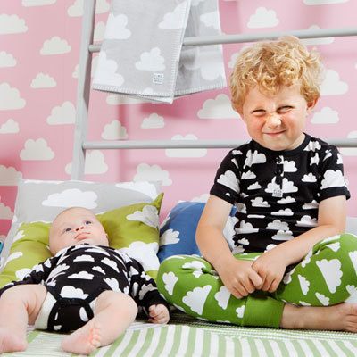 Färg & Forms älskade mönster Moln som designats av Gunila Axén finns som mysiga tapeter för barnrummet.