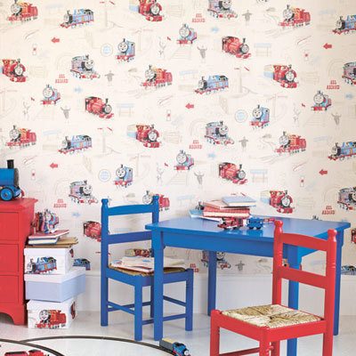Från brittiska Jane Churchills tapetkollektion Nursery tales kommer den här söta tapeten med Thomas tåget.