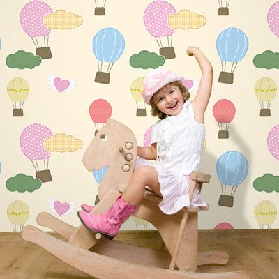 Tapeten Perfect day från Byracka föreställer luftballonger och flygande hjärtan.
