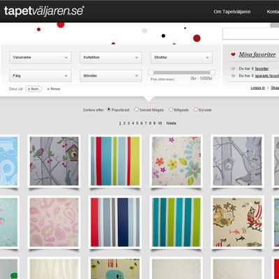 Och på Tapetväljaren.se kan du söka på tapeter efter olika färg och mönster från en mängd olika tapetmärken.