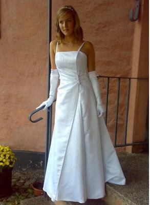 Mammabrud i fin chiffongklänning, dekorerad med lite strass undet bysten. Du väljer själv om du vill ha dragkedja eller snörning i ryggen. Klänningen sys efter dina mått.
