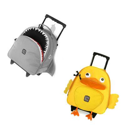Pick & Pack gör lekfulla och funktionella väskor speciellt designade för barn. Tidigare har en rad olika ryggsäckar funnits och nu kompletteras utbudet med små resväskor på hjul i form av en anka eller en haj.