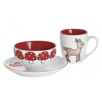 Rådjuret Abbie från Kid’s Concept har funnits flera säsonger och då prytt t ex bokstöd och mätstickor. Nu dyker den söta figuren även upp på en servis i porslin.