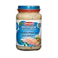 Semper har en hel serie med produkter som både är ekologiska och närproducerade, och riktar sig till barn från 4 mån och uppåt. Alla maträtter tillverkas i Eslöv. Ekologisk lax är en nyhet i sortimentet. Det finns även en maträtt med ekologisk kyckling från Bosarp i Skåne. Pris: ca 12 kr Mer info om var du kan köpa produkten.