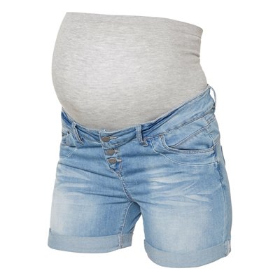 Ett par gravidshorts i denim från Mamalicious. Shortsen har skön bomullsresår över magen och ett justerbart midjeband på insidan. Mamalicious har jeansshorts för gravida i många olika modeller och även i svart.