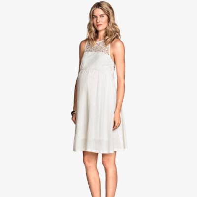 En ärmlös klänning i trikå med spetsok. Klänningen är avskuren med resår i midjan och har brottarrygg. Hos H&M och deras mammakollektion MAMA hittar du ett urval trikåklänningar i somriga färger.